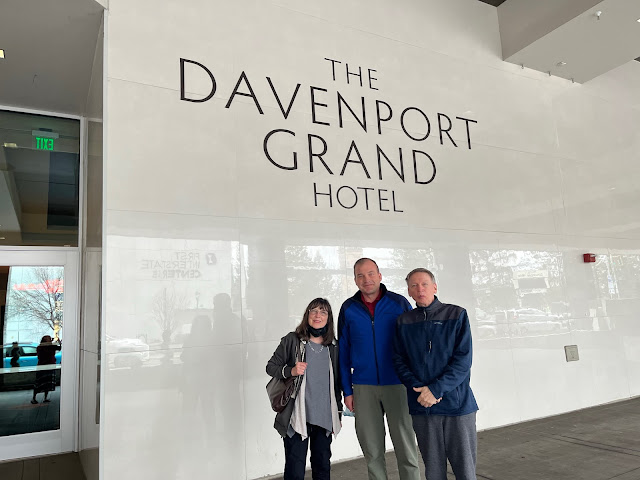 The next day we toured the area where the World's Fair was in 1974, the year I was born. My Grandpa Call had been one of the people in charge of planning it, since he was the city planner. We went on a gondola ride and walked around by the Spokane Falls. We ate lunch at Anthony's, overlooking the falls, which is actually the place where my dad remembered bringing dates (but with a new name). Then we went to the concert, which was held at the Fox Theater in Spokane. We snuck up on Rebecca and surprised her! She was VERY surprised, which was super fun! We looked around the Davenport Grand Hotel, and the Historic Davenport Hotel, where the choirs had been rehearsing and staying. That night we went to dinner with the choir at a restaurant near the Fox Theater right after the performance. We stayed another night with my Aunt Diane, and then the next morning we flew back home. We happened to be on the same flight as Rebecca and the other students from her choir, so that was fun!